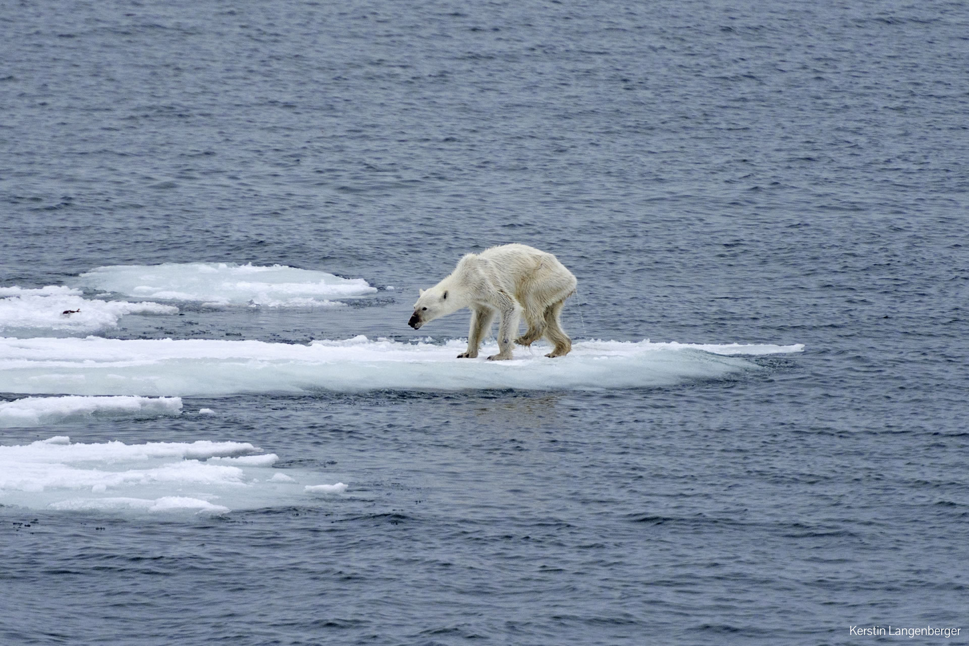 The polar bears use the sea ice as a hunting platform. Without the ice they can’t catch the seals – so no ice means scarce food.