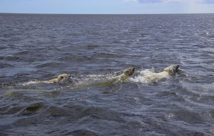 As the sea ice is melting earlier and earlier in the year, polar bears are being forced to swim greater and greater distances, searching for prey, burning up calories and body weight.